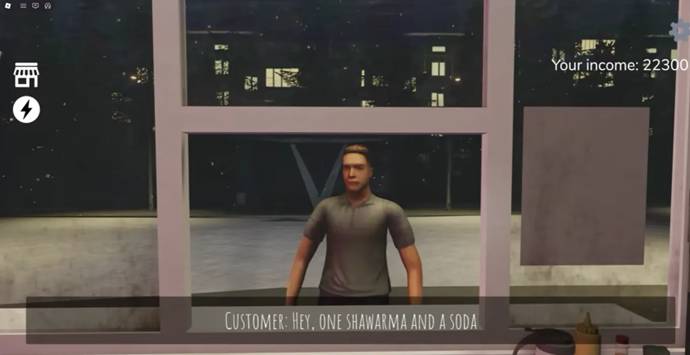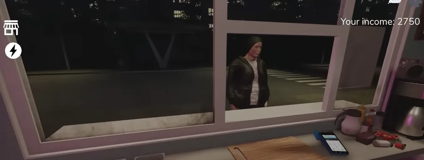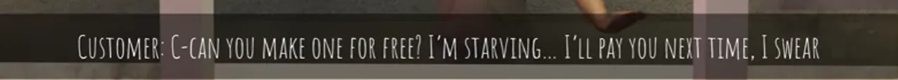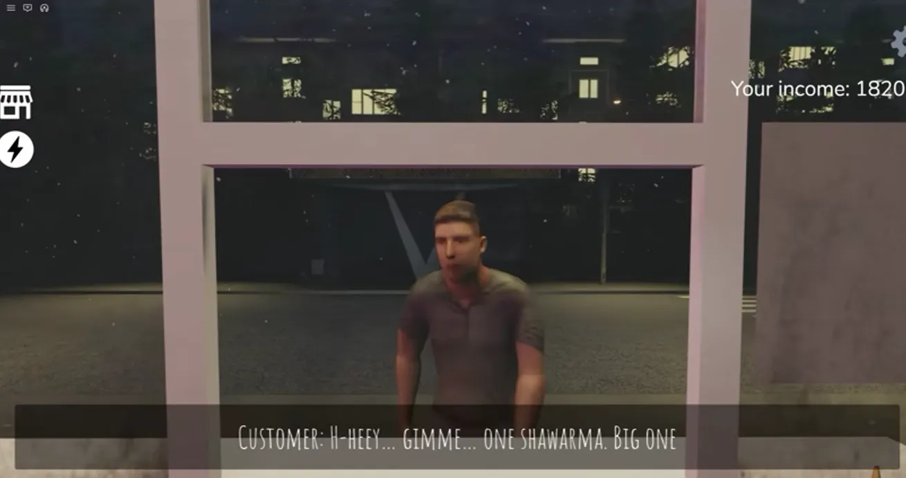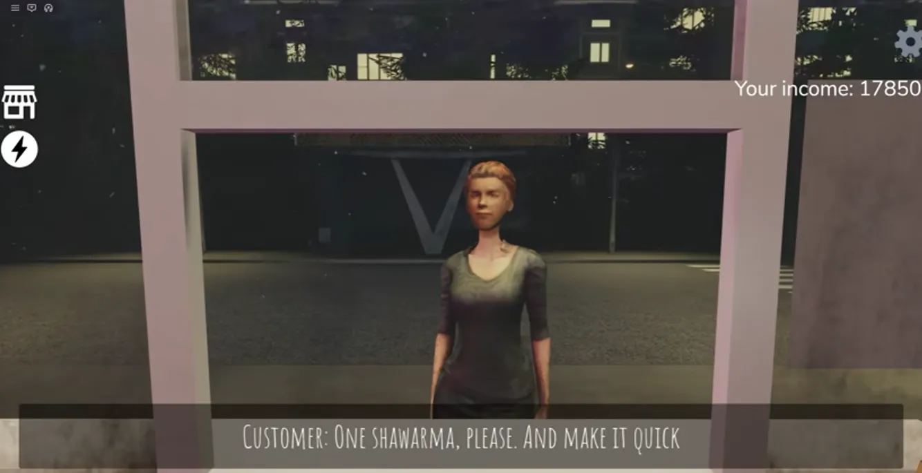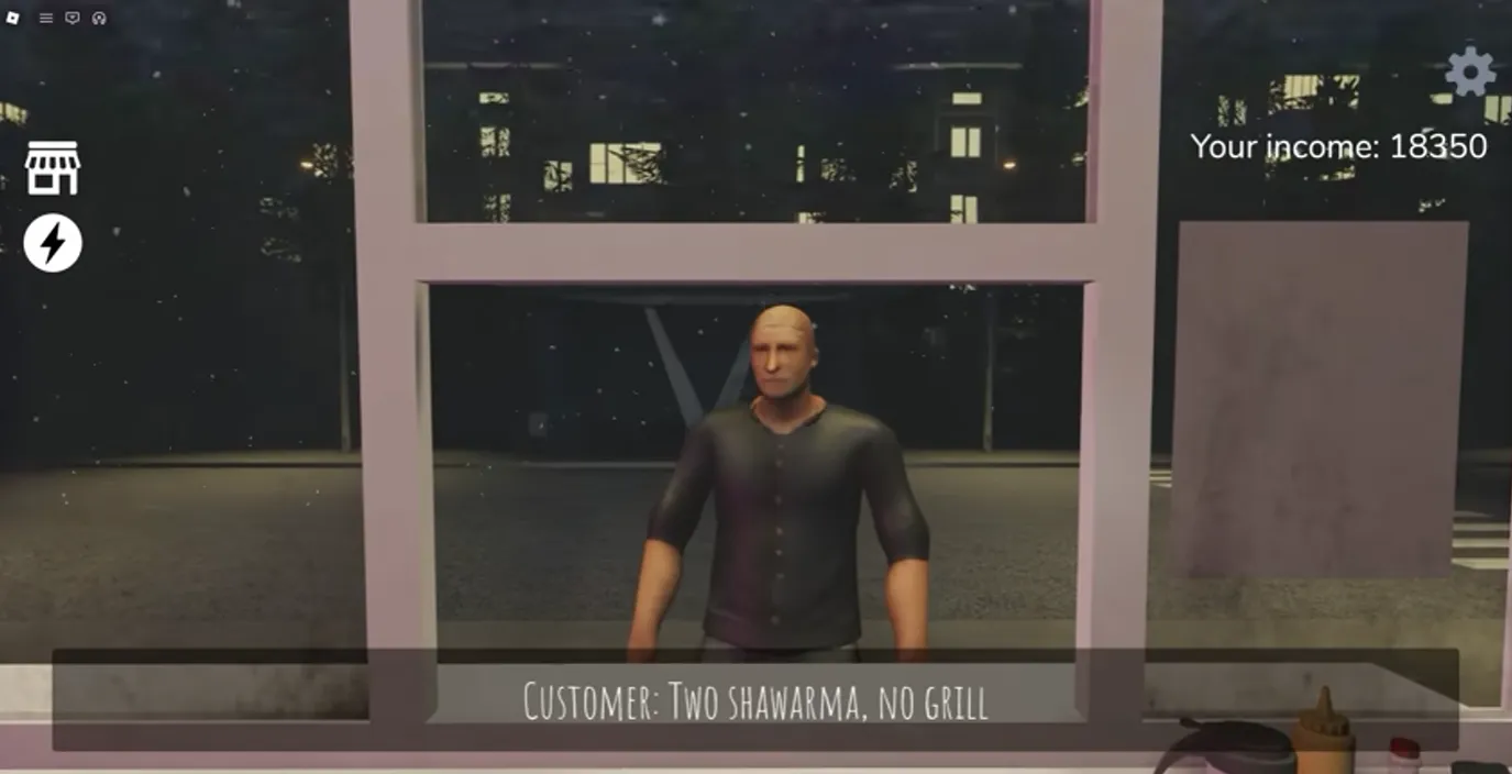 This customer seems perfectly normal; he orders a shawarma from you. After you prepare the shawarma, he walks straight across the street, throws the shawarma at your window, and then you have to go outside and clean the window.