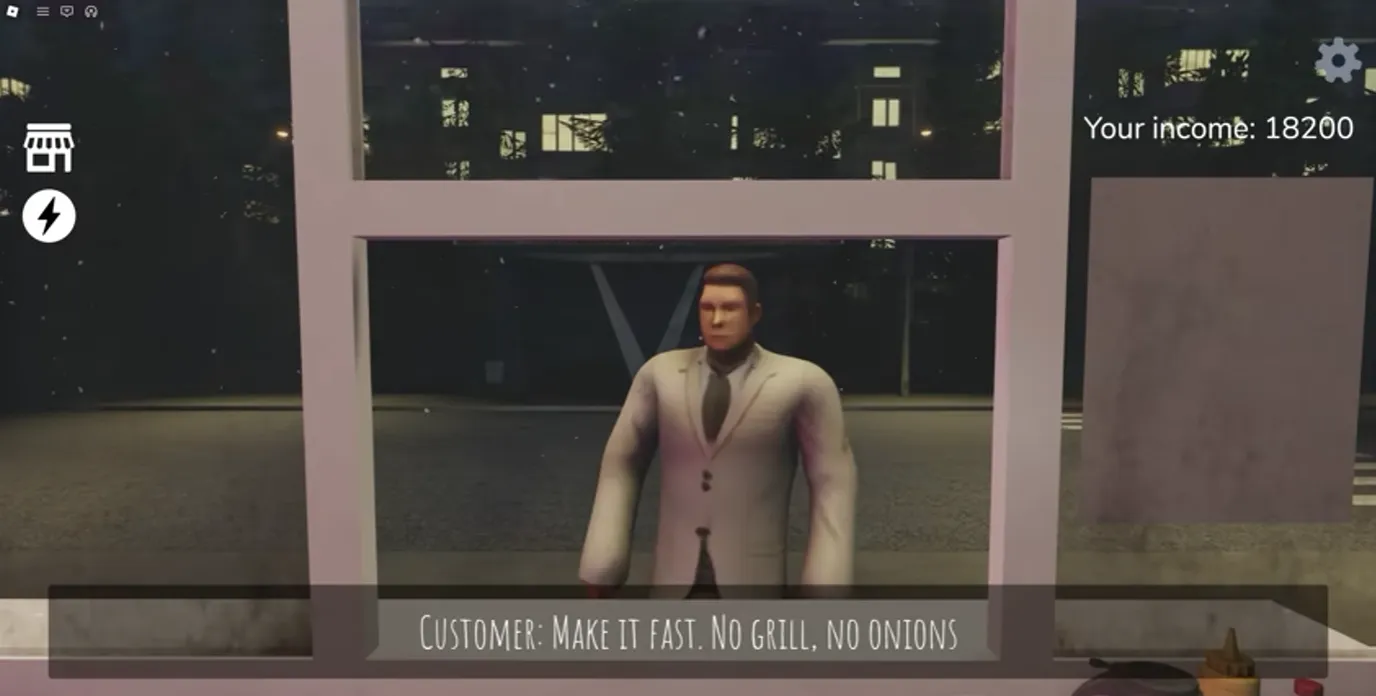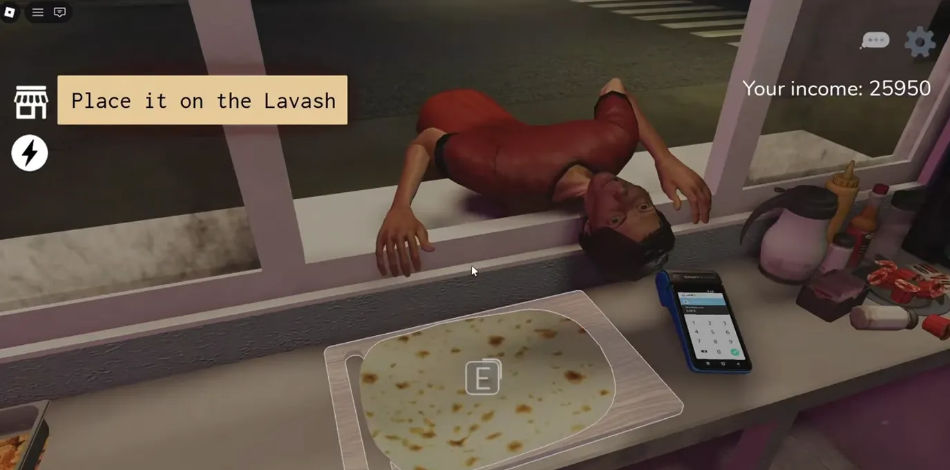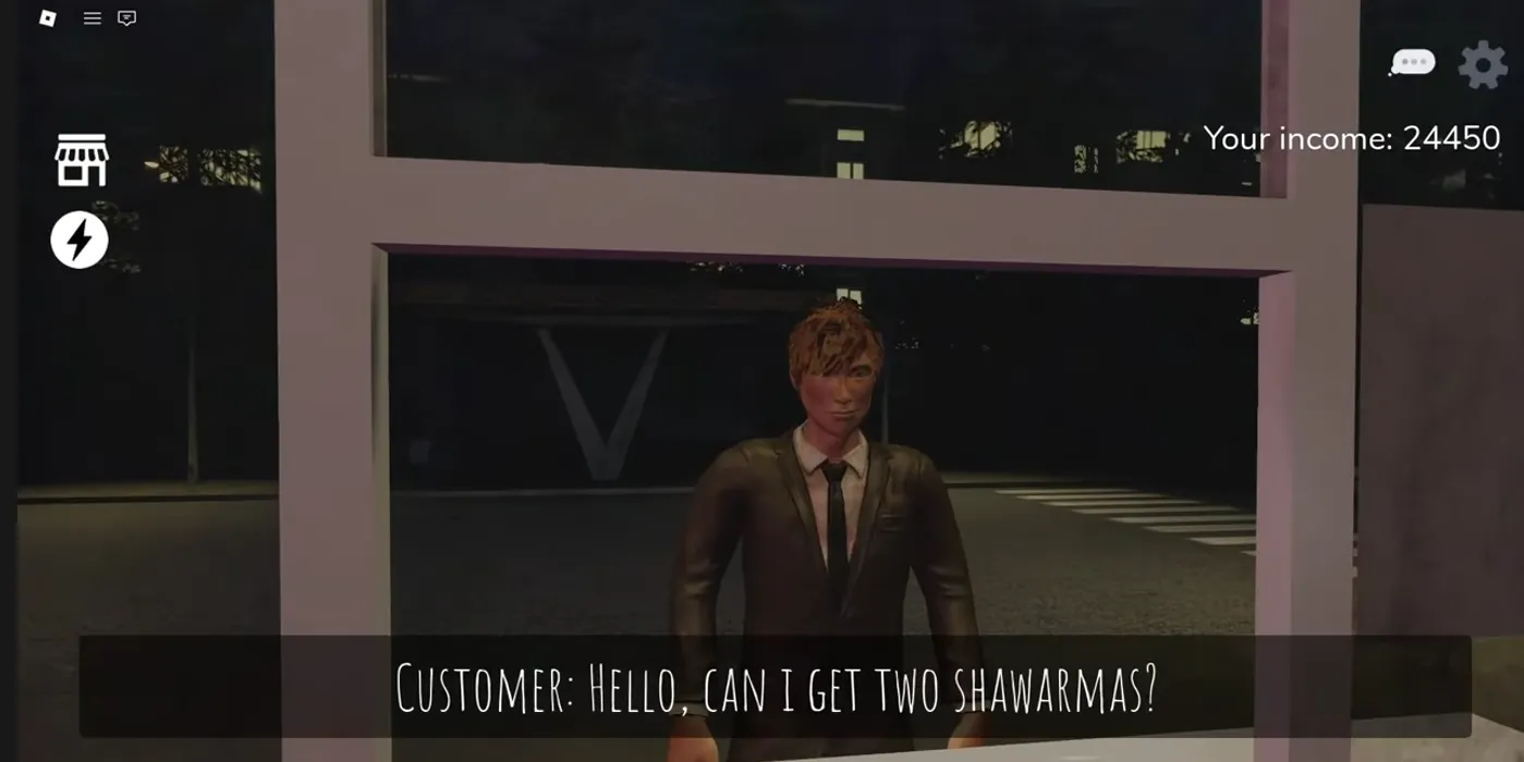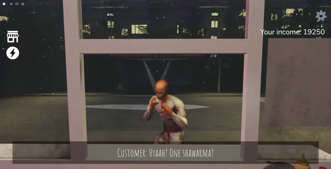 This customer seems perfectly normal; he orders a shawarma from you. After you prepare the shawarma, he walks straight across the street, throws the shawarma at your window, and then you have to go outside and clean the window.