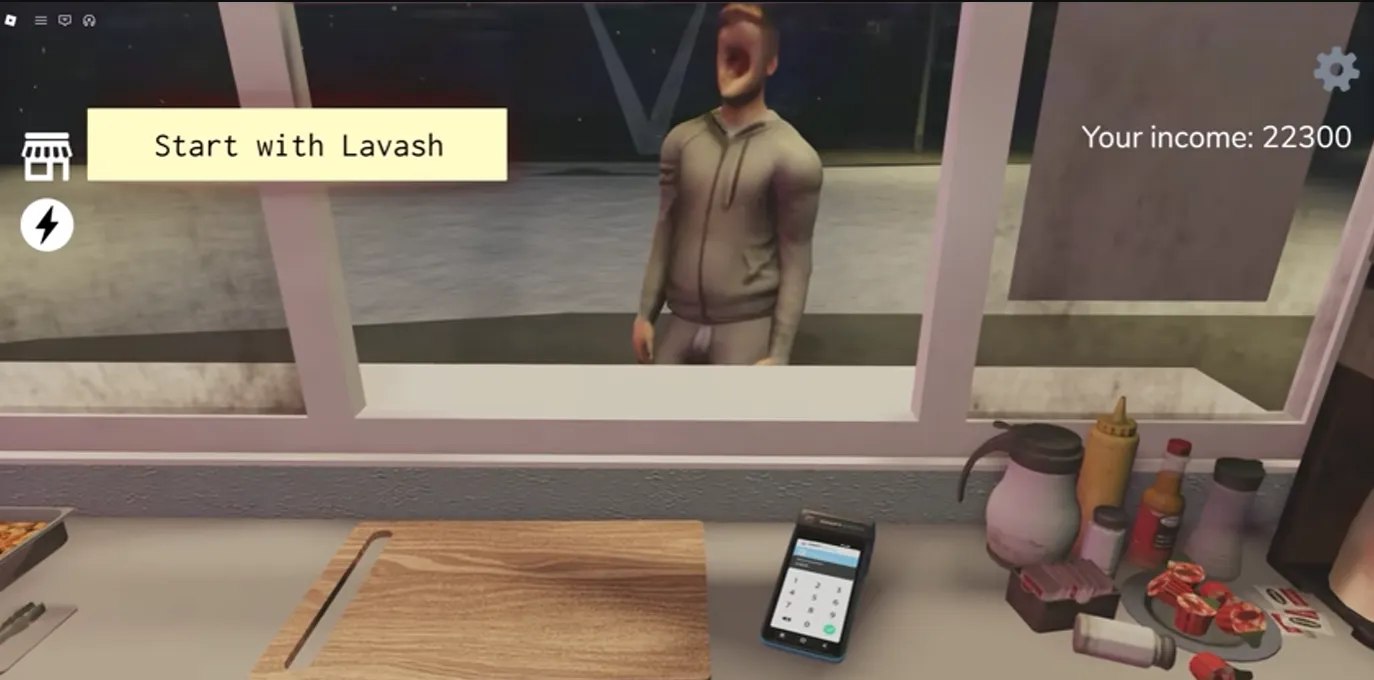 Scary Shawarma Kiosk: the ANOMALY is a Roblox game where you work at a humble shawarma stand. Your job isn't just serving customers and making shawarma, but interacting with them. However, not all customers are human. In Scary Shawarma Kiosk: the ANOMALY, you'll encounter various monsters and strange occurrences, such as headless men, smiling men, bizarre Santas, and sometimes even your own kebab will attack you.