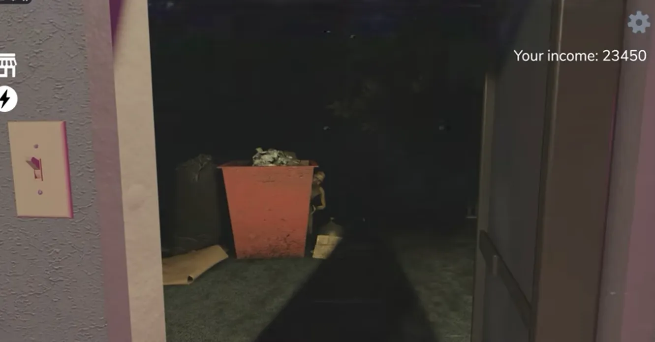 First, the lights flicker eerily, accompanied by terrifying sound effects (you need to watch out for this jumpscare), and then a huge figure suddenly appears in front of you. It looks very much like a zombie, so don't hesitate to refuse to let it in. This angry zombie will knock over the trash can and also damage the outdoor power supply. At this point, the player needs to go outside and repair the trash can and the outdoor power supply. There is a specific order to follow: you need to upright the trash can first before you can repair the power supply.