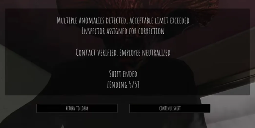 The "Unstable Ending" is the second-best ending and one of the most common, as making one or two mistakes is quite common. However, you need to make fewer than five mistakes to unlock this ending. If you miss one or two anomalies, refuse to serve a genuine customer, or miss a certain event, this ending will be triggered at the end of your shift. You must make fewer than five mistakes, as more than five mistakes will unlock a different ending.