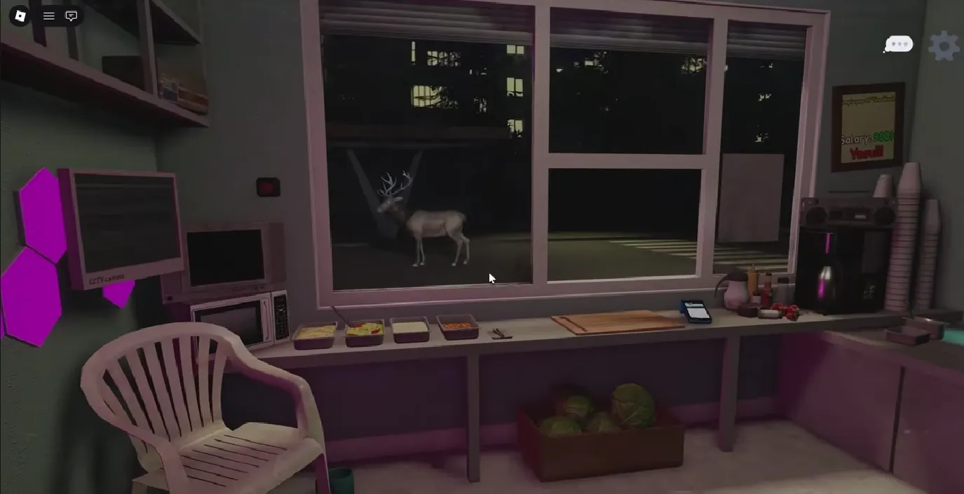 The "Observer" is a strange entity that you'll encounter in multiple locations during your shift. This naked, humanoid creature will appear on the grill, on top of the refrigerator, on the ceiling, behind the trash can, under the counter, and even through the window. Until the very last encounter, it will suddenly appear in front of you in a jumpscare fashion. Staring directly at it will make it disappear.